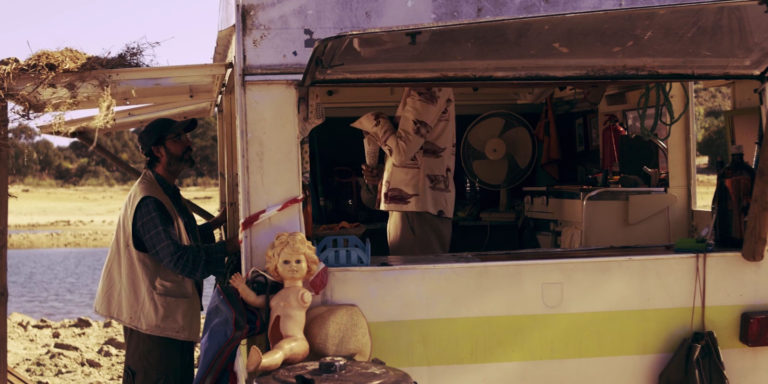 A perfect day, blue skies and perfect weather. Zé is going fishing. On a desert lake a strange and charismatic character rents boats using an old semi abandoned trailer. Both of them are part of an infernal cycle that will end up transforming the prey into the hunter. The one who dies kills and the one who kills is already dead.